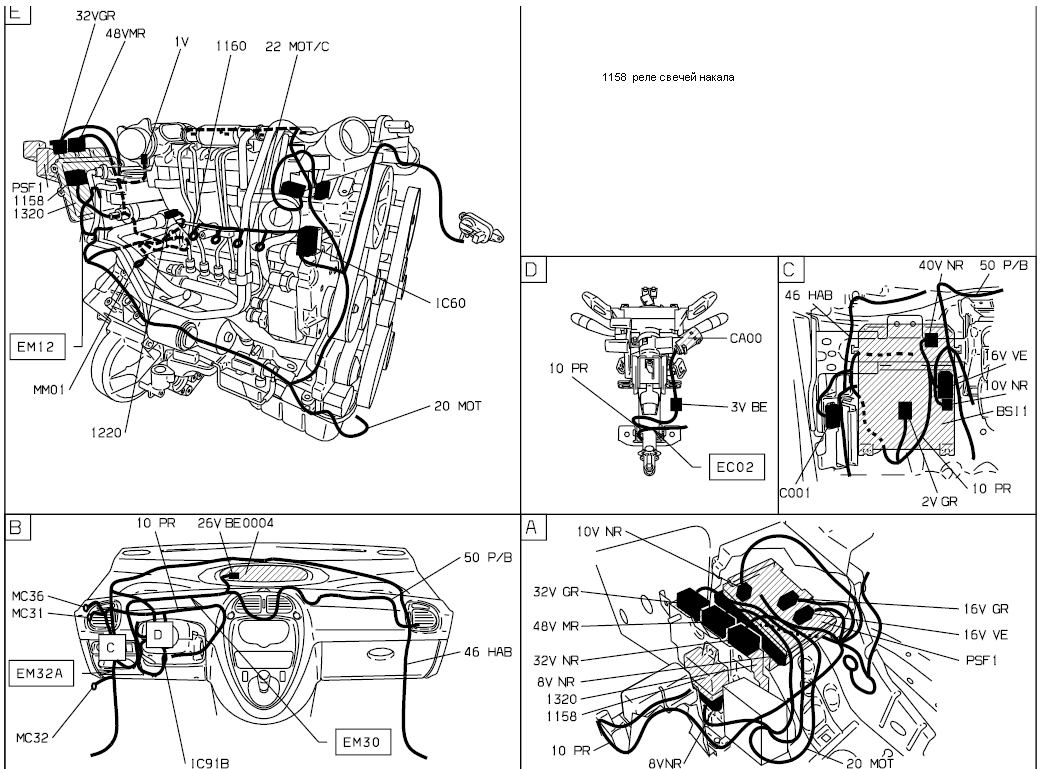 sarewich Опубликовано 1 августа, 2018 Автор Поделиться Опубликовано 1 августа, 2018 @wladimir_zh, свечи конечно не в удобном месте но вам достаточно прозвонить по проводам на реле , каждая свеча должна звонится на корпус , сгоревшая не звонится . Схемы с ксара пикассо , думаю будет похоже на вашу , если не сориентируетесь то просто снимите фишку с реле накала и на ощуп с зеркальцем и фонариком лезте за двигатель и прозвоните сами контакты свечей на корпус реле свечей.bmp схема 1.bmp Бес 1 Ссылка на комментарий